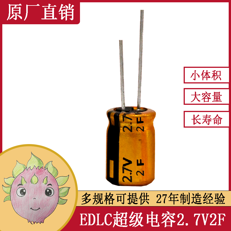 產(chǎn)品標(biāo)題:JMX2.7V 2F單體引線型超級(jí)法拉電容器系列8*16 適用于電動(dòng)玩具